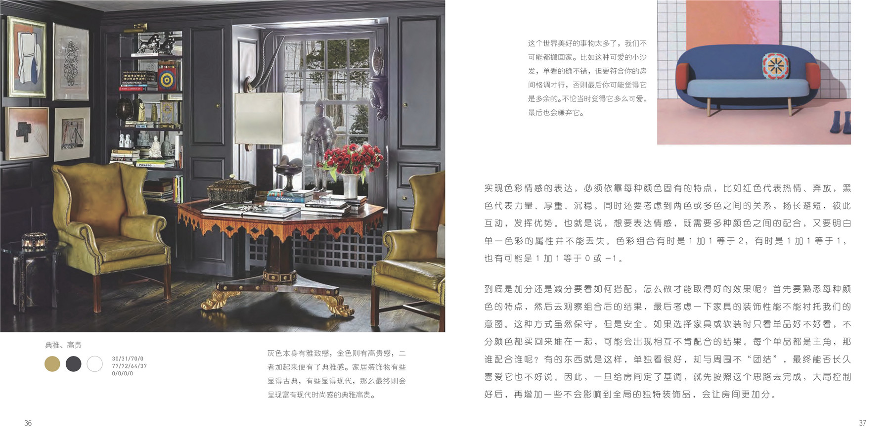 无论您是急于为客户做室内设计配色的设计师,还是想改变一下家居配色风格的普通读者,这本书都能为您提供令您满意的色彩搭配。不管您是喜欢时尚现代的风格,还是衷情于古典的风雅,抑或崇尚田园的自然,或许还有一点原木情结,甚至于您想让自己的居室有些禅意,都可以从书中找到相应的配色方案。CMYK的参数可以保证您准确定位色彩,配色比例可以让您一眼找到主角与配角。