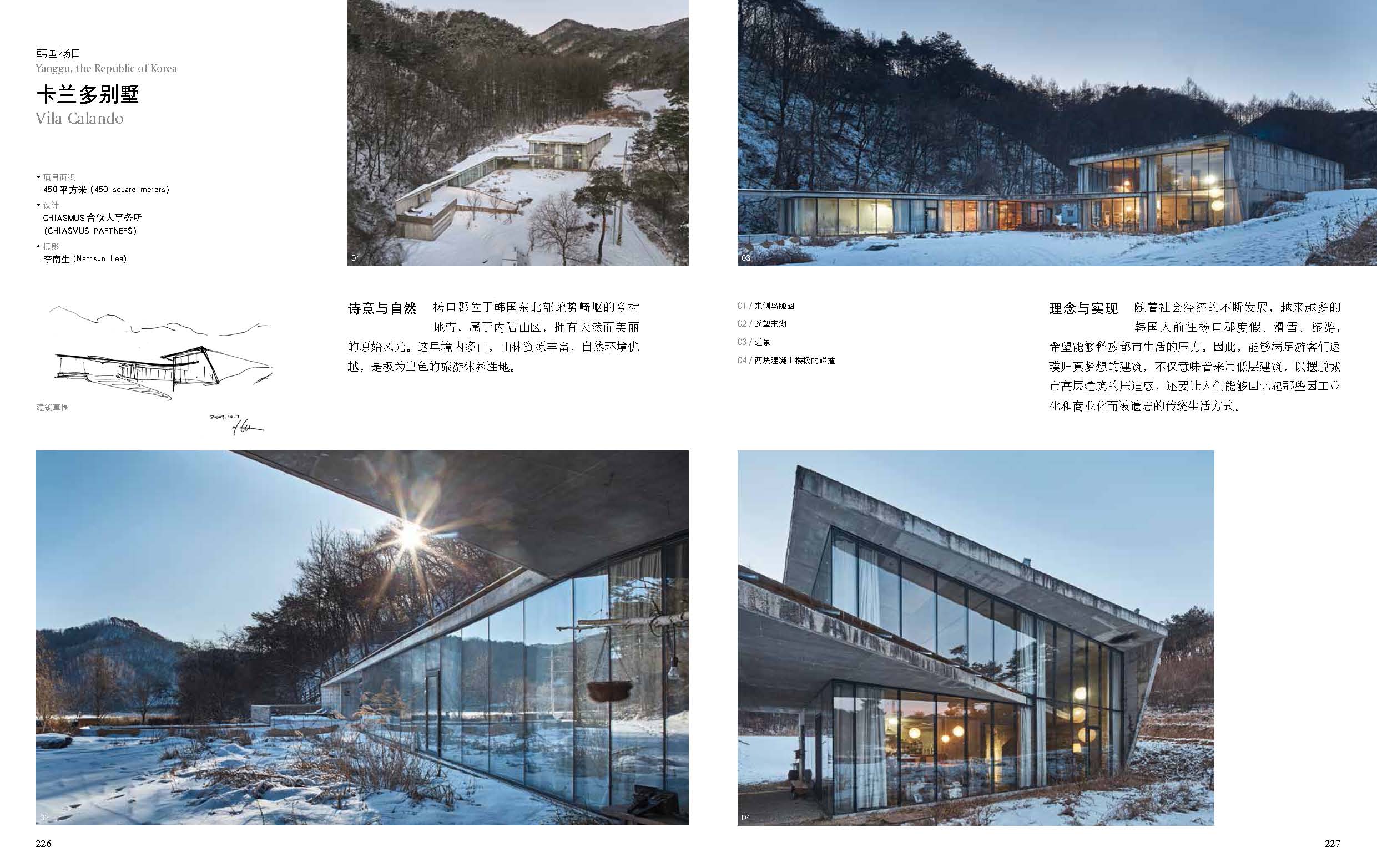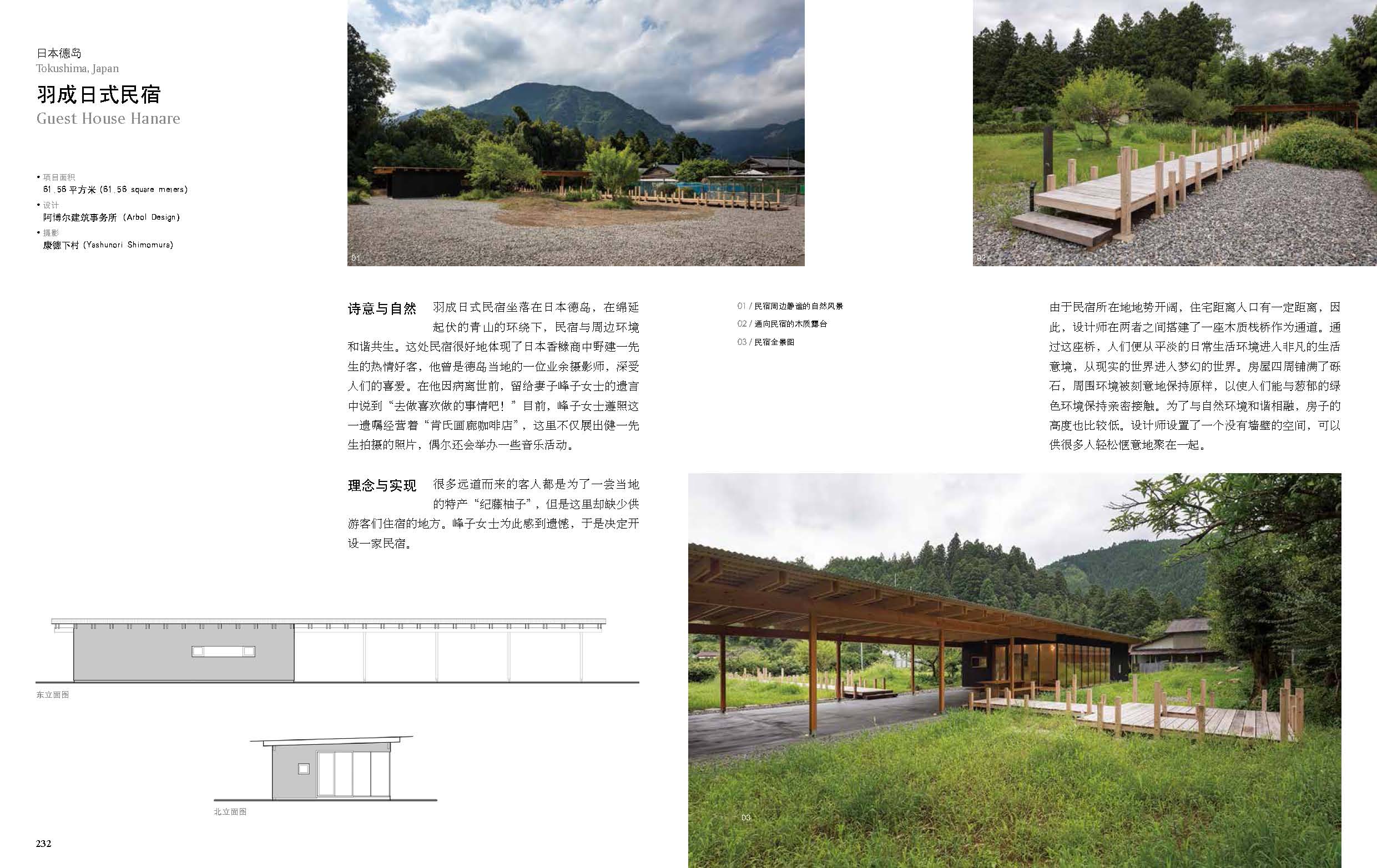 《乡村民宿》精选全球范围内38个案例,侧重解析建筑设计等技术性方面的内容。书中每一个案例既有实景图片和设计图纸的展示,也有详细的文字分析,为读者展现了乡村民宿的别样魅力。希望本书通过展示图片、设计图纸以及详细的文字解析,可以让读者更好地了解乡村、了解民宿,同时为民宿设计师及相关从业者提供参考。