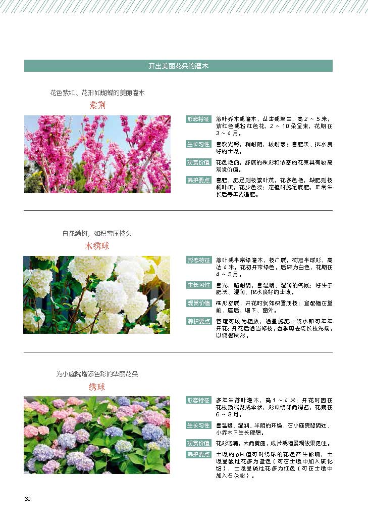 特别推荐48种小庭院常见、易购、好打理、造景效果极佳的植物,如鸡爪槭、木绣球、绣球花、藤本月季、铁线莲、玉簪、大丽花、鼠尾草、马蹄莲等的搭配及养护技巧。
