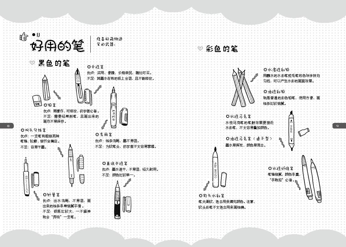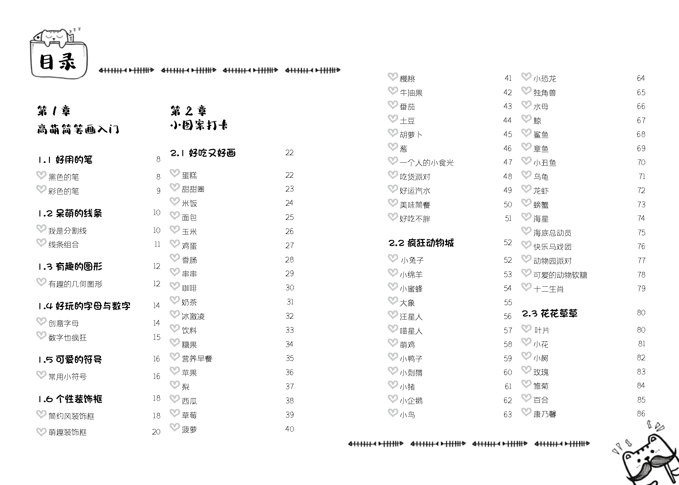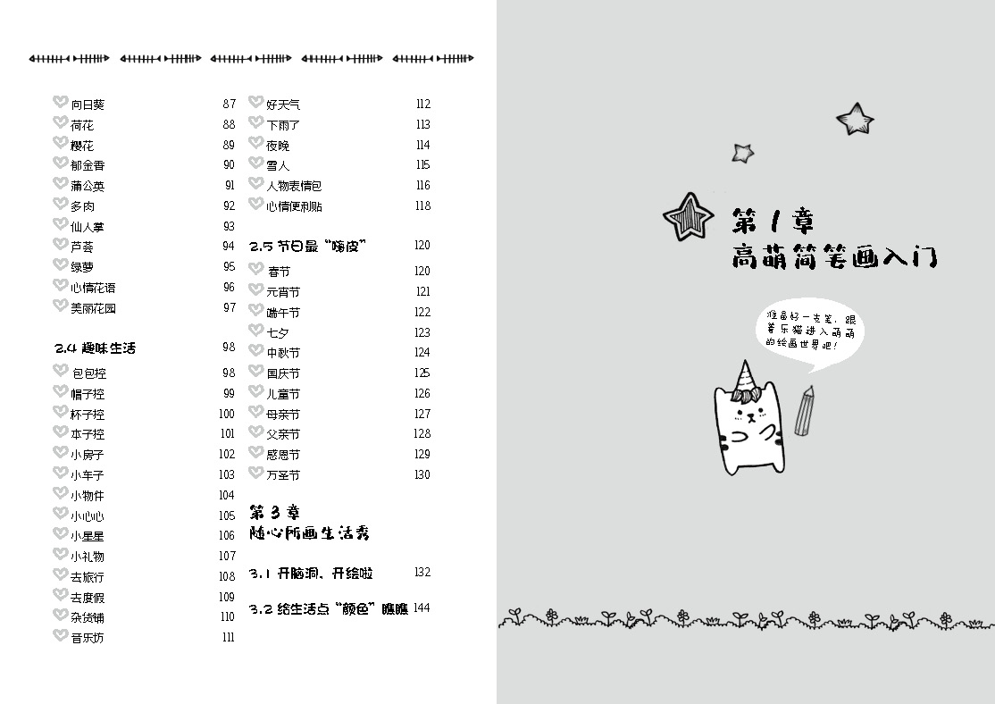 4.作者独有的三步教学总结和技巧分享。可以让读者举一反十,用一支笔就可以自由创作可爱手绘。