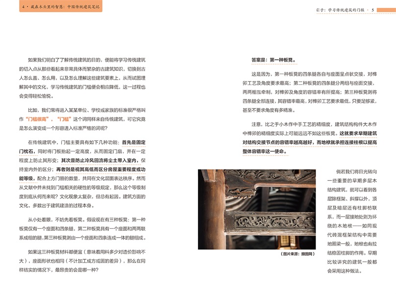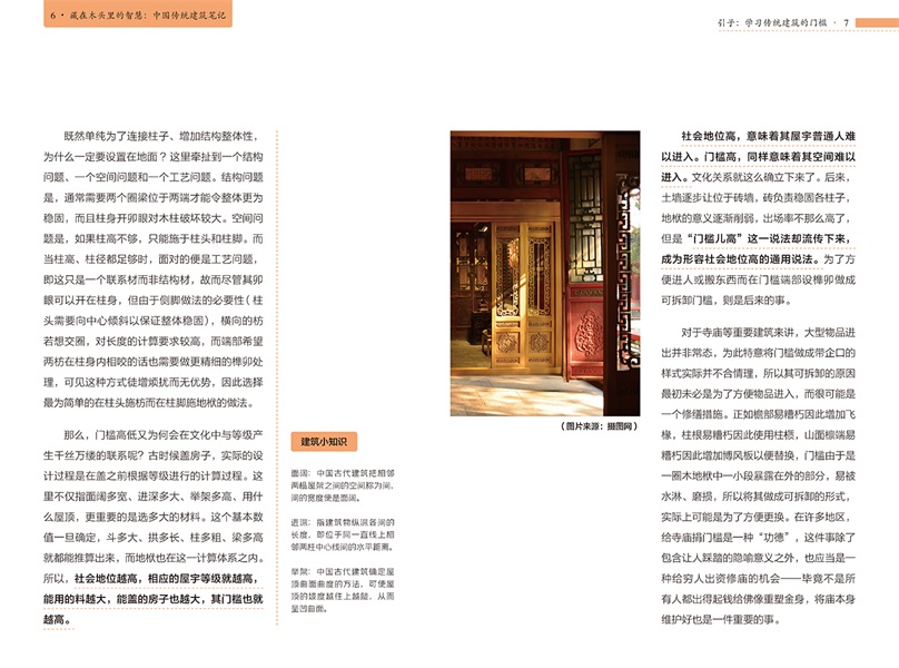 本书没有落于介绍具体建筑的窠臼,而是从大处着眼,从传统建筑的建造逻辑入手,巧妙地分析了古人为什么这样建造的原因,并详细解释了建筑随技术发展而出现的变化,让读者在理解了传统建筑内部构造的同时,深深叹服于中国古人的智慧。正如作者在前言中所说,希望大众在关注中国传统建筑时,不仅是因为“传统”,更因为其中所蕴含的那些能够超越时代的建造的智慧与设计的质量。