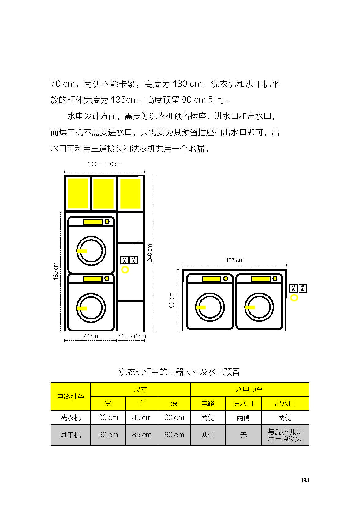 洗衣机和烘干机的标准尺寸是60 cm(宽)×85 cm(高)×60 cm(深),