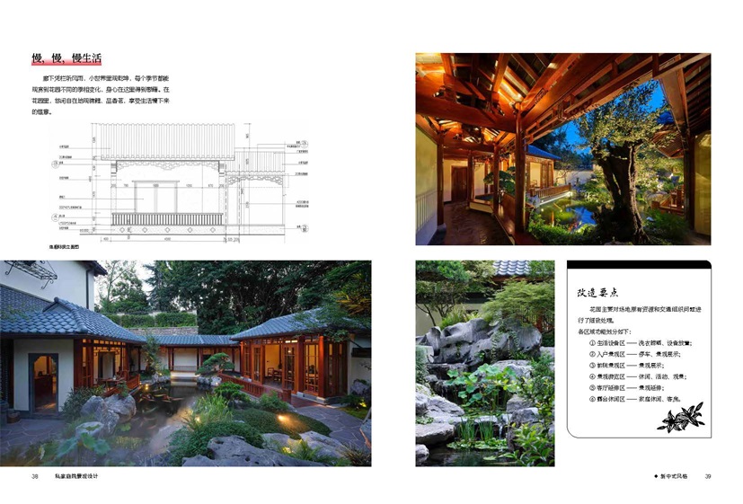 书中还特别加入了详细的CAD图纸,既有平面、立面、节点和大样,也有铺装、植物配置、灯光和水电,让庭院的每一处施工都不再成为难事。只要你具有一方院子,总有一款适合于你。