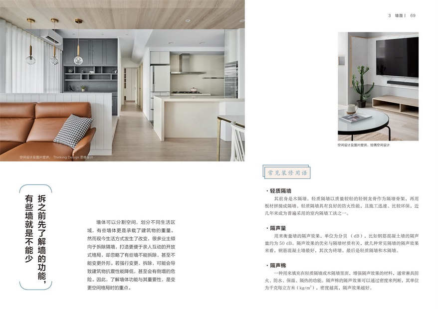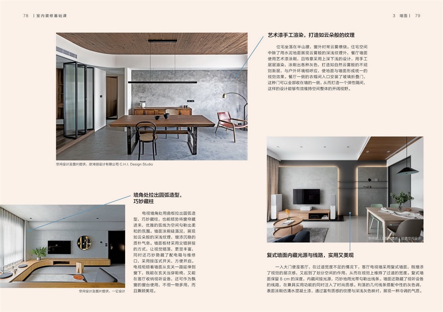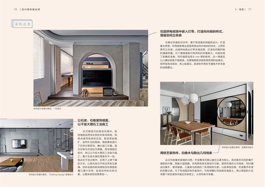 ★实例应用搭配实景图,详解装修需求。众多实景配图,拉出引线指向细节注意事项,设计巧思清晰明了。