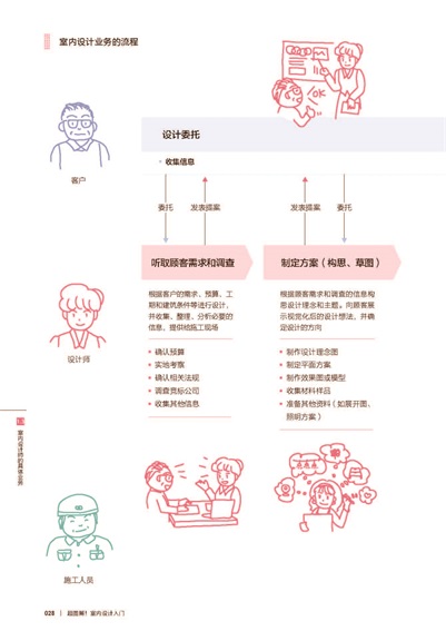 本书涵盖了室内设计行业分类、家具组合、照明设计到人体工程学尺寸等多项内容,还介绍了可能会遇到的合作对象、工作内容、执行业务的流程,让设计师在面对业主时能实时判断与回复。
