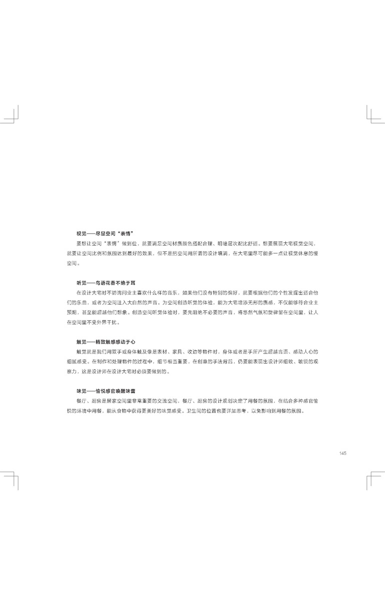 第yi部分,平面配置。一个好的平面图决定设计方案的成败,绘制平面图时应该将生活的想象转化成设计思维并融入其中。第er部分,艺术陈设。艺术品的陈设装饰能为空间带来价值,设计师的职责就是要让艺术品为空间加分而不是扣分。第三部分,材料选择。生活的质感是在细微的体验,并非外在表现的形式,即使是廉价的材质,透过设计手法和用心琢磨的工法也能有非凡的呈现效果