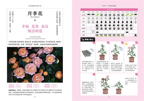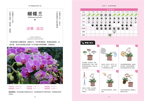 本书收录有适合春、夏、秋、冬四季栽培的近70种常见阳台花卉,按植物的开花季节归类,每种花卉除标有生长类型、花语寓意、观赏效果和观赏期等基本信息之外,还特别配备有全年养护花历,用图标的形式展现,简洁明了,同时又以漫画形式加入种植小贴士,阅读轻松,一目了然。