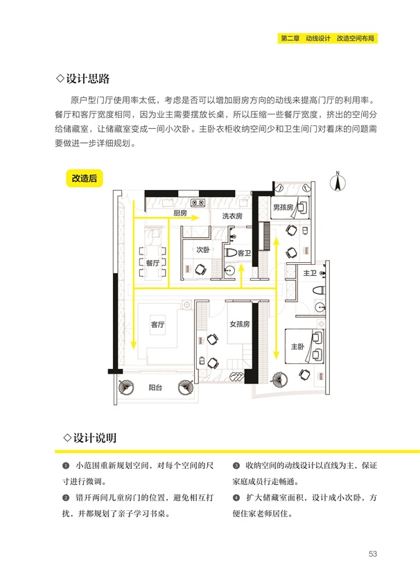 访客动线、居住动线、厨房动线、书房动线、污净分离、清洁动线、喜好动线、收纳动线、宠物动线……国人常用的动线在本书中就能找到实际案例