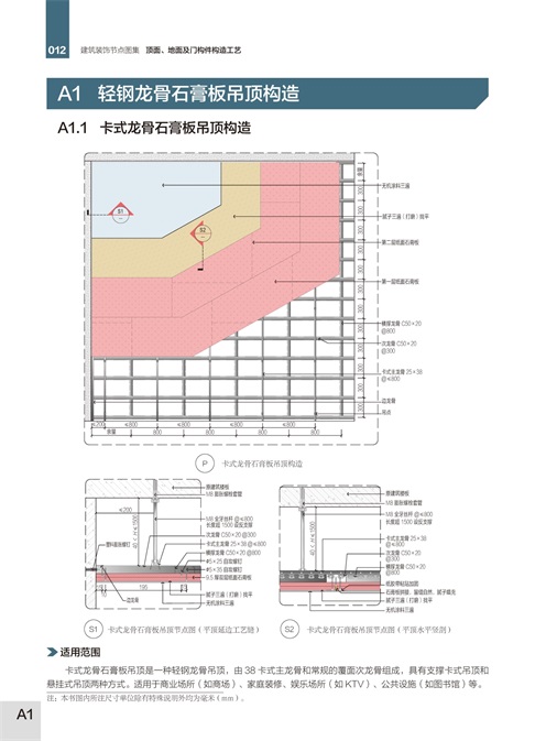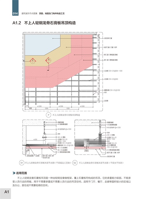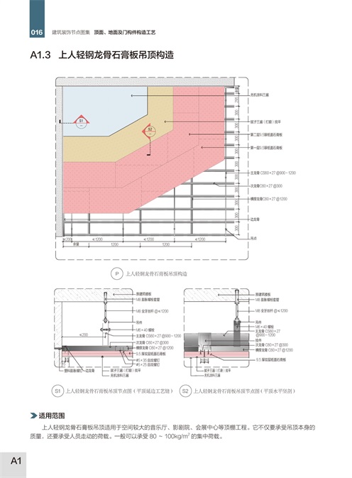 A1.3 上人轻钢龙骨石膏板吊顶构造 016