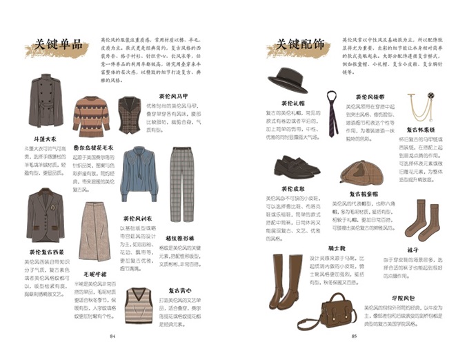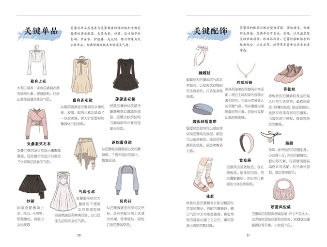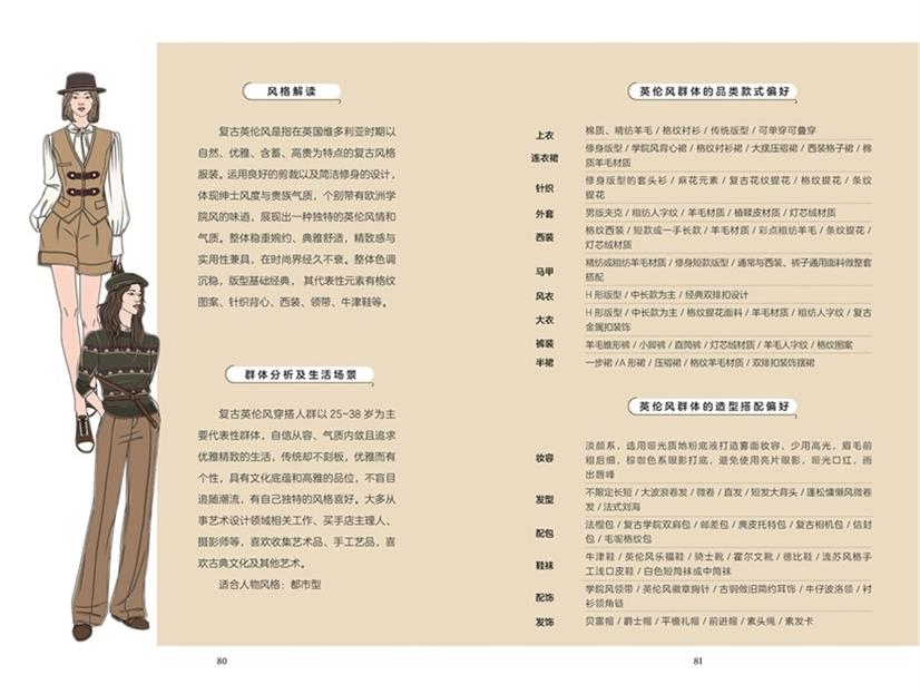 在此基础上,书中进一步解析时装造型风格,如芭蕾风、老钱风、酷飒御姐风、甜酷新中式风等,结合风格调性、关键单品、生活场景、色彩建议与搭配技巧,指导读者如何将人物风格与造型风格进行匹配,打造适合自己的穿搭方案。