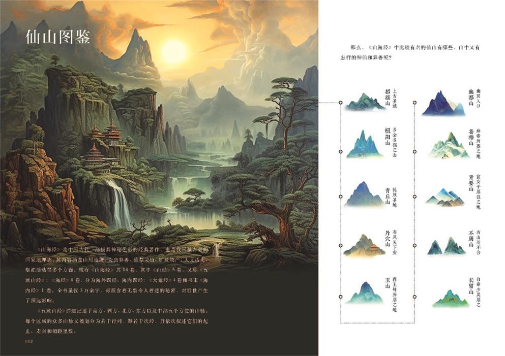 它精选五章经典内容,以“图鉴”形式梳理仙山、神兽、方国等核心元素,既保留原文的古朴神韵,又用现代视角解读背后的文化隐喻——西王母的威严、共工触山的悲壮、扶桑与若木的日月神话,所有这些散落在古籍中的光怪陆离,都化作可触可感的生动图景。