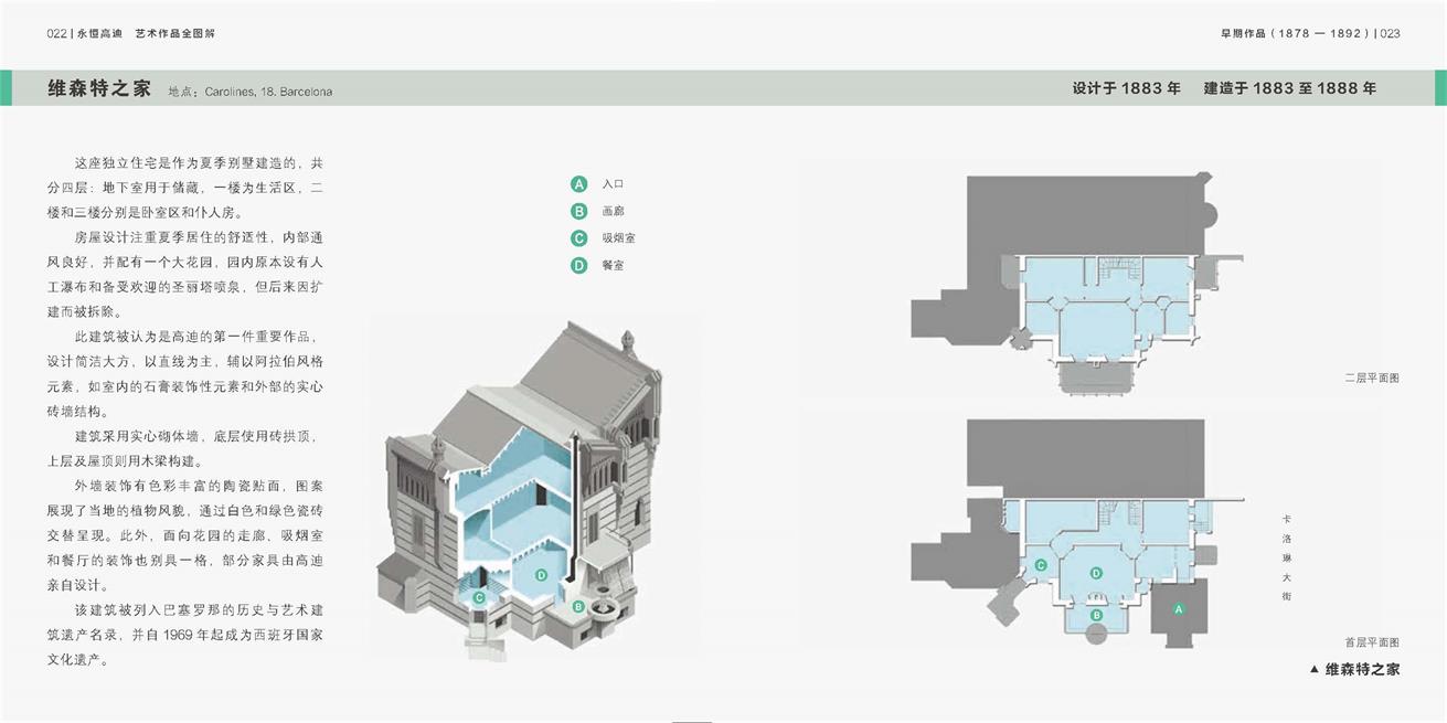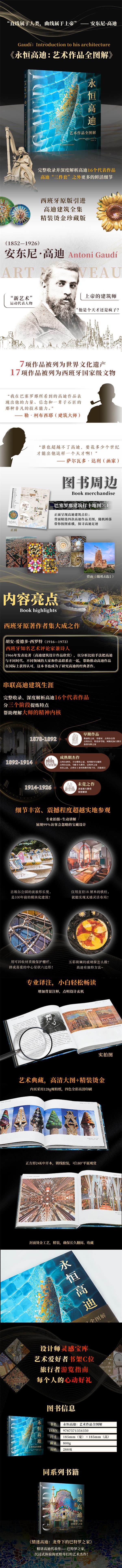 本书基于西班牙原版内容制作,完整保留文化背景与设计精髓,让读者无需远赴巴塞罗那,即可沉浸式感受高迪作品的震撼魅力。书中不仅收录圣家族大教堂、米拉之家等标志性建筑,更呈现了高迪三个创作阶段的作品,满足深度研究需求。