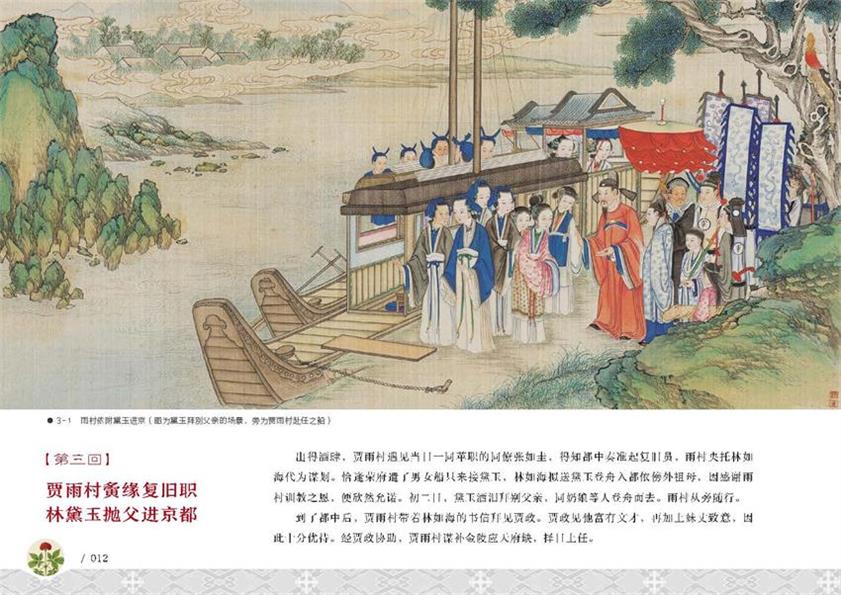 一图一文,相辅相成。画作下方标注对应的章回名称,并附简明情节梗概,无缝串联红楼经典情节,将文学语言与绘画细节一一对应,引导读者从“赏画”走向“读画”,看画中故事,读笔底春秋。