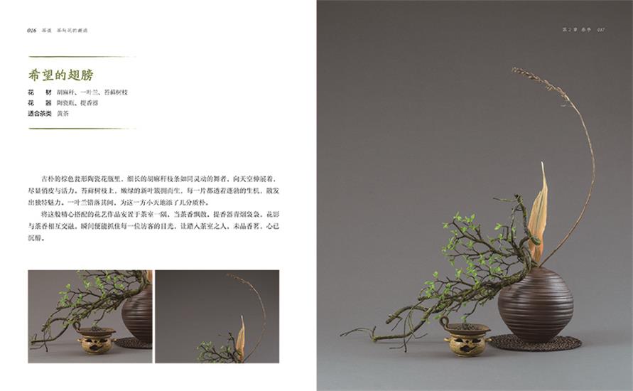全书内容含括茶花的特点和美学特征、茶道插花的基本原则等,根据春、夏、秋、冬四个季节进行划分,收录了近百个茶席插花的作品。每个作品里面均收录有花材、花器以及设计特点等文字,方便读者在品茶的同时,选择合适的器具,并由此美化我们的生活空间,提升大众的艺术品位。