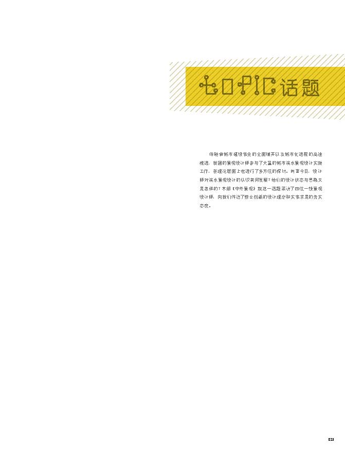 3.市场上以景观为主的杂志多为介绍案例,本书侧重于探讨国内景观界突显的各种矛盾,是设计师思想、理论、作品抒发的平台。