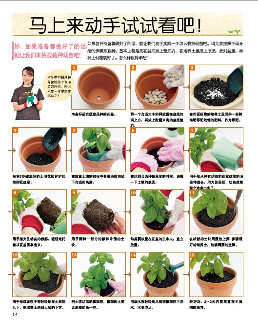 28种蔬菜的阳台栽种方法,播种、浇水、打叉、收获每一步都有实景照片,每种蔬菜配备栽种小月历和护理小贴士,可操作性极强。