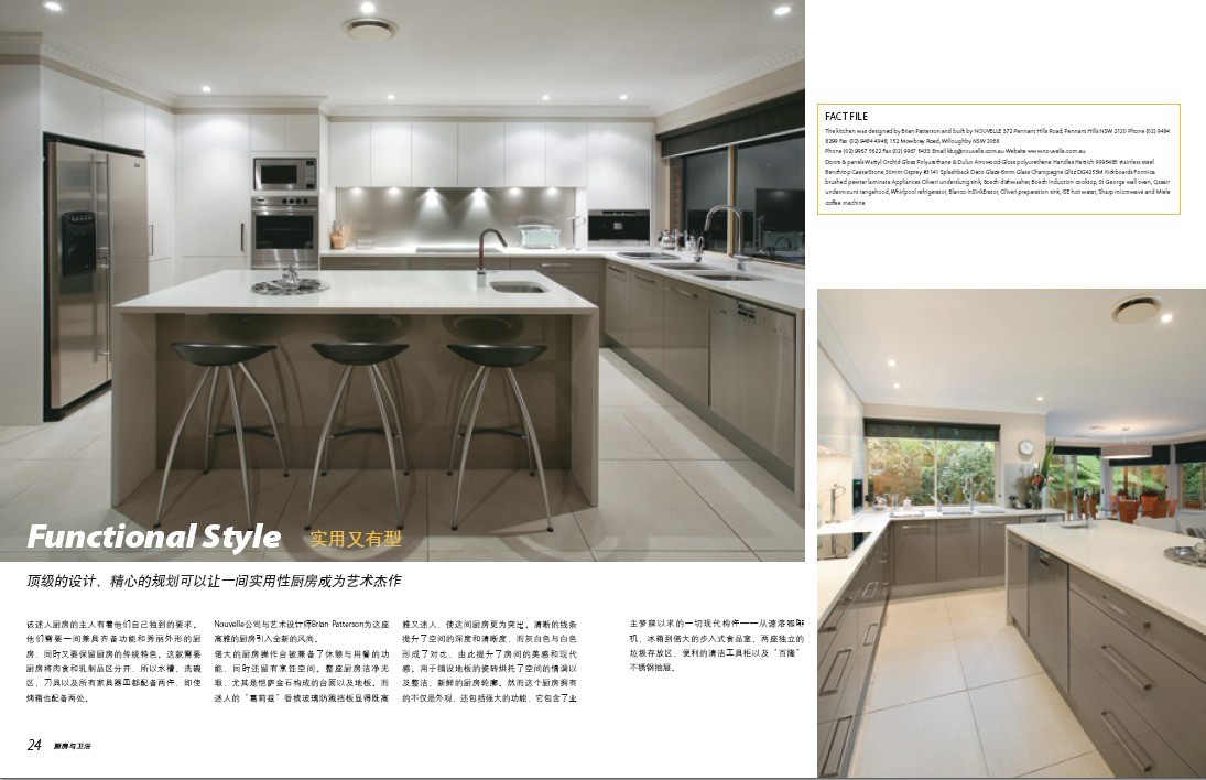《厨房与卫浴》(Kitchens & Bathrooms)是中国首本高端时尚厨卫杂志。我们携手住房工业协会(HIA)、国际室内设计师及建筑师联盟(IFI)、国际工业设计师联合会(ICSID)等多家极具影响力的专业机构深度合作,向全球读者展示国际先进的厨卫设计理念、顶级室内设计作品及前沿产品信息。杂志着眼于产品设计、空间布局合理化、灯光营造、材料应用等方面,用极具视觉冲击力的照片,诠释最新经典案例。我们秉持“设计生活,审美至上”的原则,坚持专业视角,提供最新国际设计,让设计美好生活.