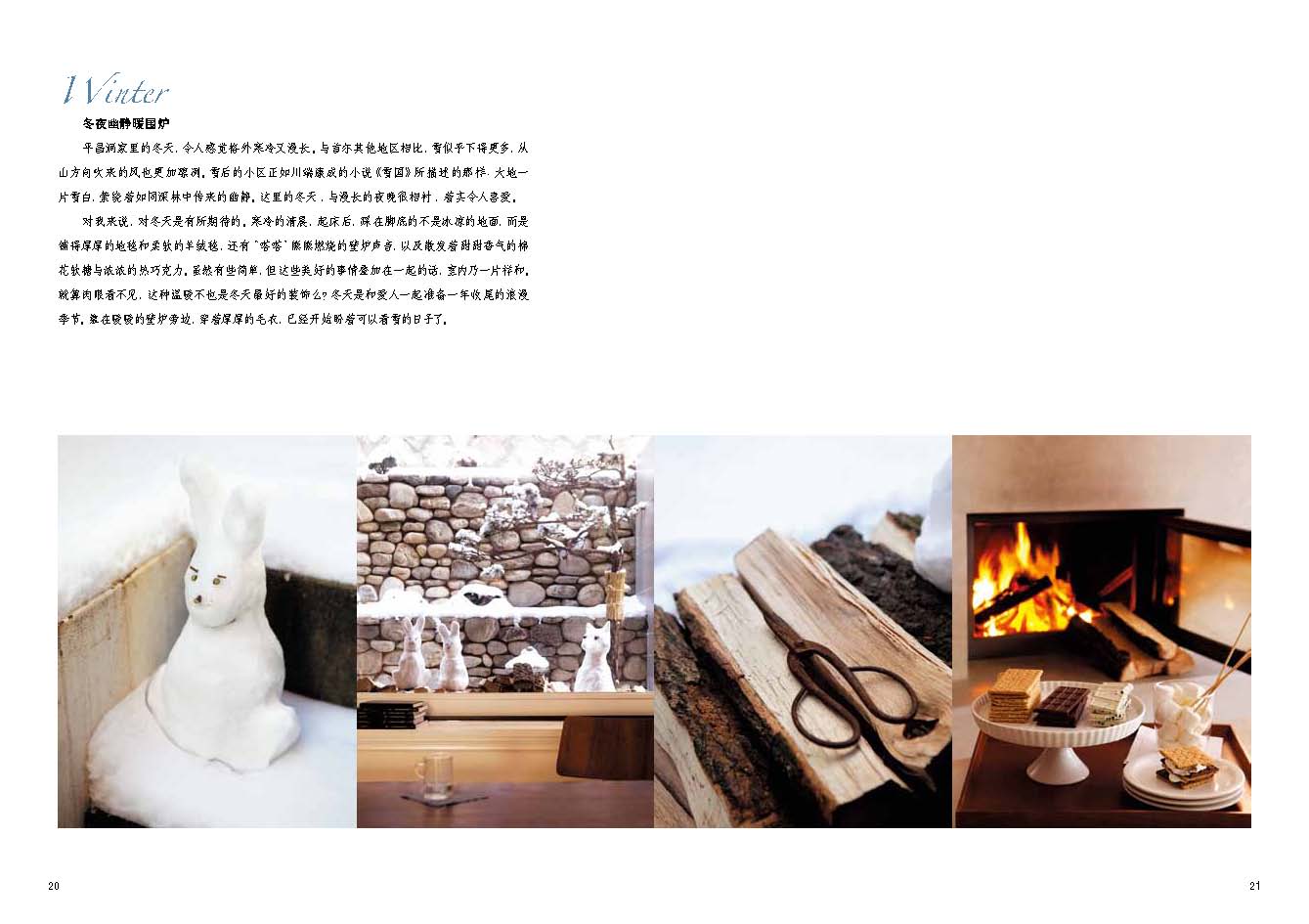 本书详细讲解了简单易行而恰到好处的点缀装饰和储纳方法,收录了作者许许多多 独到的小创意和小建议,这些设计师头脑的闪光弥散在玄关、客厅、厨房、书房、 卧室、衣帽间、浴室、工作室、庭院和阁楼等房间布局的每个地方。充分体现了设计师节俭不奢华,追求品质力求完美的理念。随着四季的变化,简简单单一个小小的调整就可以将自己的居室打扮得与季节相符,给每天的生活带来愉悦的享受。