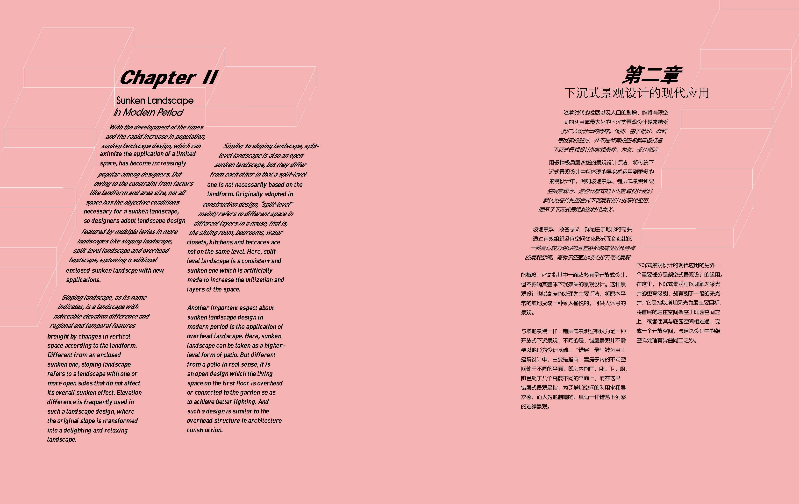 本书分为传统下沉式景观和下沉式景观设计的现代应用两大章节,其中,下沉式景观设计的现代应用部分又分为坡地景观、错层景观和架空层景观三大类。通过实际的设计案例,配以详细的规划图纸,图文并茂地向读者展示了下沉式景观的设计思路、设计过程和设计效果。