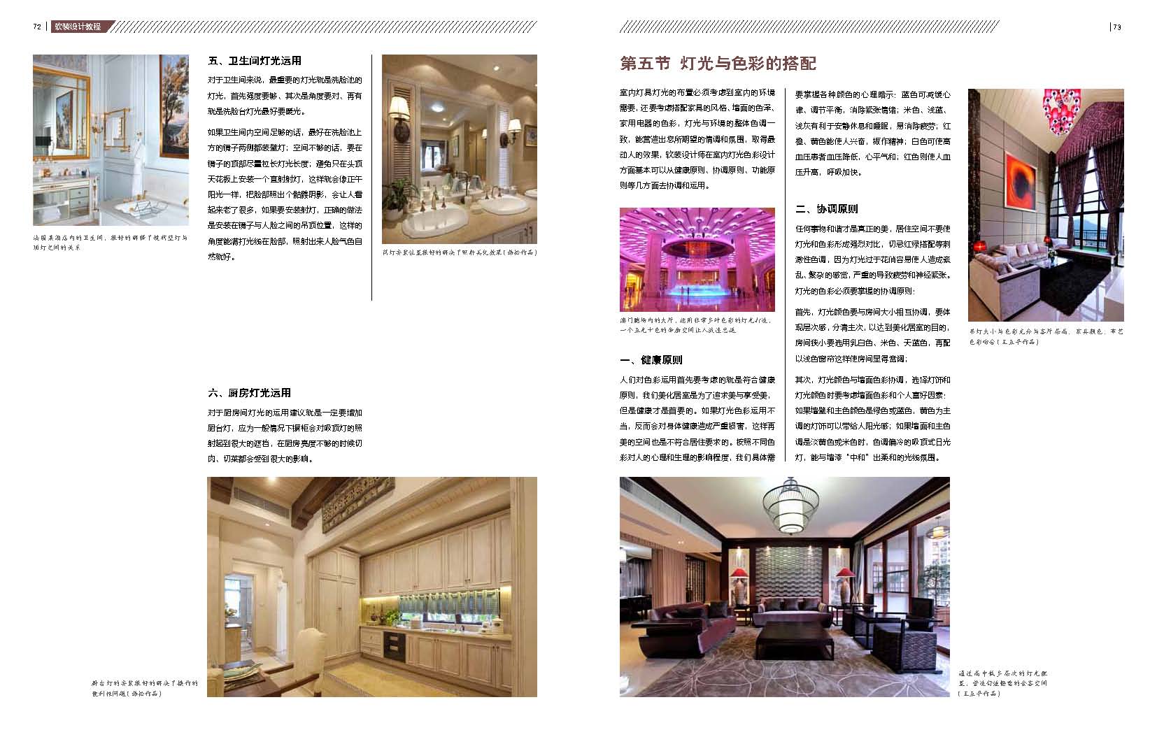 2.软装元素介绍:相对于先前出版过的软装类书籍,《教程》中软装元素介绍更为丰富,且详细分析了各种元素在各个空间、各种风格中的应用,内容更充实实用。