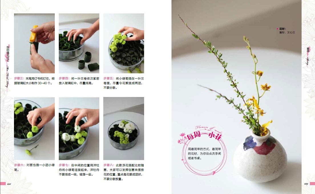 不需要特殊的花材和工具,不需要专门的花艺技巧,只需要一点点巧妙的心思,就能周周变换新花样,扮靓家居每一天!快动手来享受专属的花卉慢生活吧!