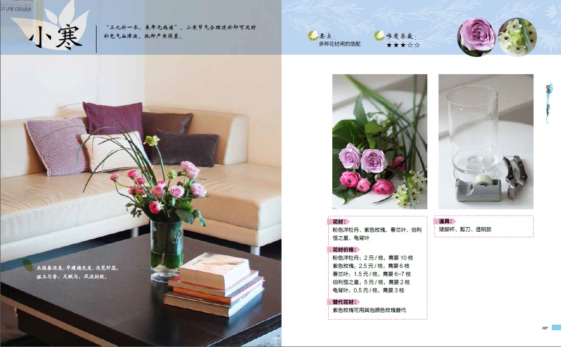 1.本书作者是一线的花艺设计师,书中偏重实际操作的可行性,从花材的选择到插花的步骤都考虑到读者的实际情况。