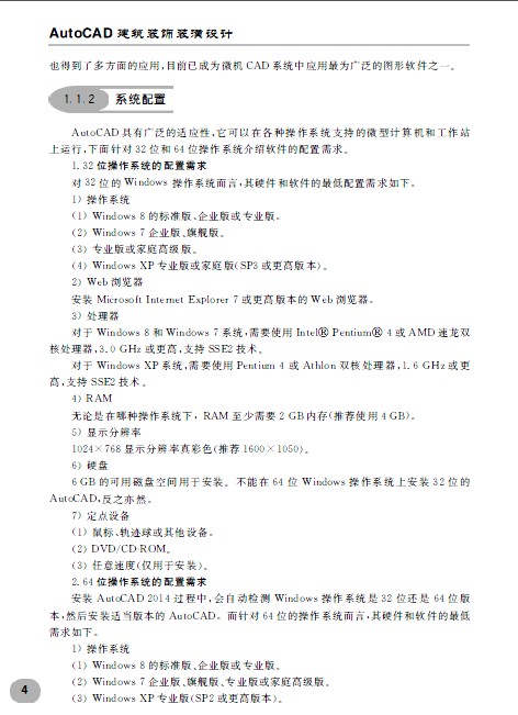 本书以最新版本AutoCAD2014中文版为平台,循序渐进地讲述了AutoCAD在建筑装饰装潢设计领域的具体应用技能。全书共由17章组成,书中实例经典、解说精细,与相关制图工具和制图技巧结合紧密,与设计理念和创作构思相辅相成。通过本书的学习,使零基础读者具备软件的基本操作技能和专业图纸的设计绘制技能,运用基本的绘图知识来表达设计效果,以体现设计之精髓。